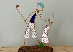 Mes créations sont des pièces uniques réalisées à la main à l'aide de fil de kraft armé et de papiers originaux.